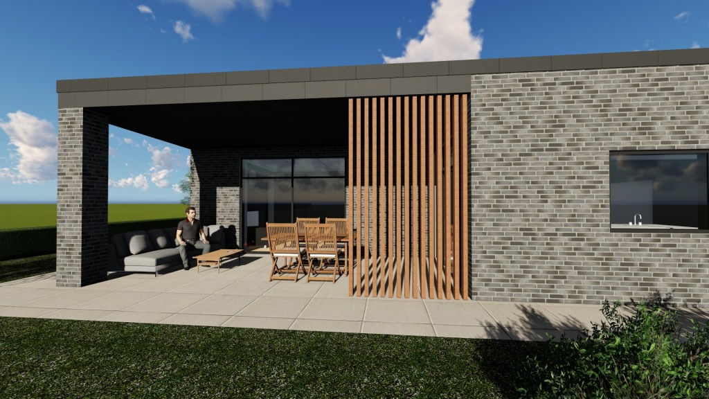 Denne familie drømte om et moderne hjem i funkis-stil med rene linjer, varme materialer og plads til det gode hverdagsliv. Et enfamiliehus i ét plan, hvor køkken, alrum og opholdszoner hænger naturligt sammen, og hvor både børn og voksne har rum til at være sammen og hver for sig. Her er der plads til leg, ro og nærvær inde såvel som ude.